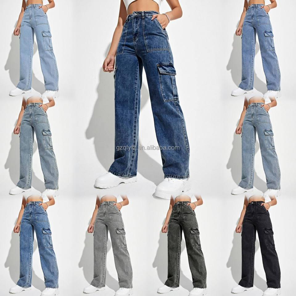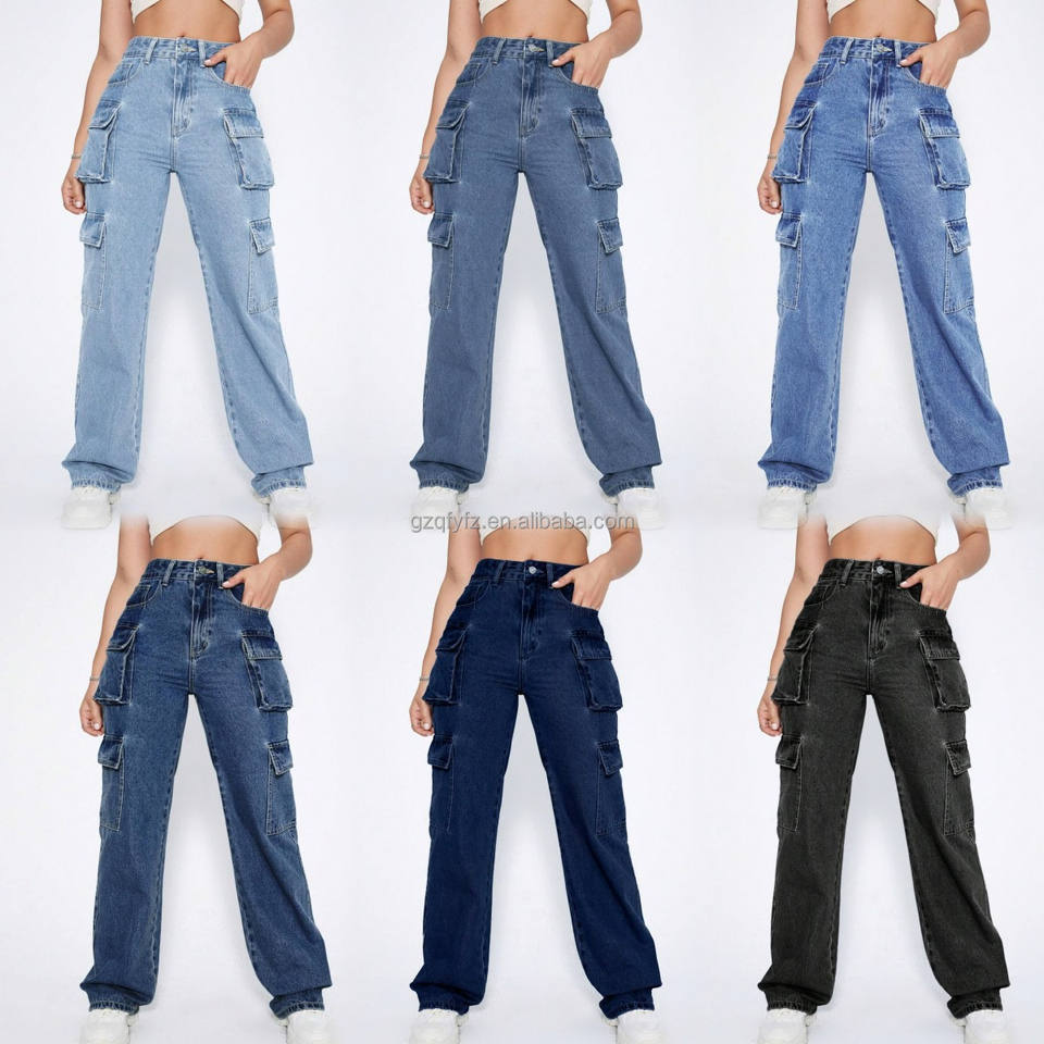 Jeans Cargo Larghi Elasticizzati con Grandi Tasche Blu Lavato Stile Americano Nuovi Economici 2025 per Uomo e Donna