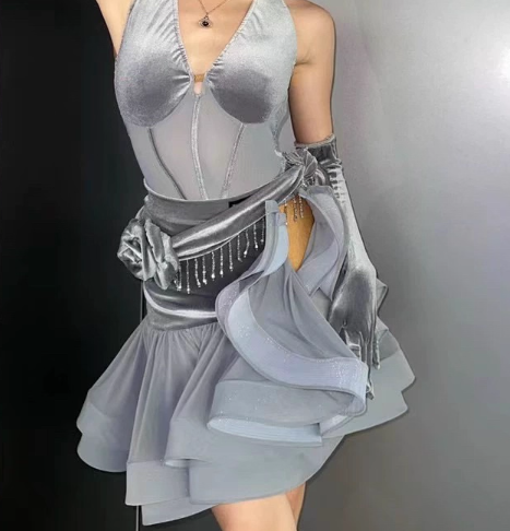 2025 Sexy Latin Dance Dress Backless Design Rumba Samba Cha Cha Leopard V Neck Dance Dress Big Swing Dancing for Women Compete