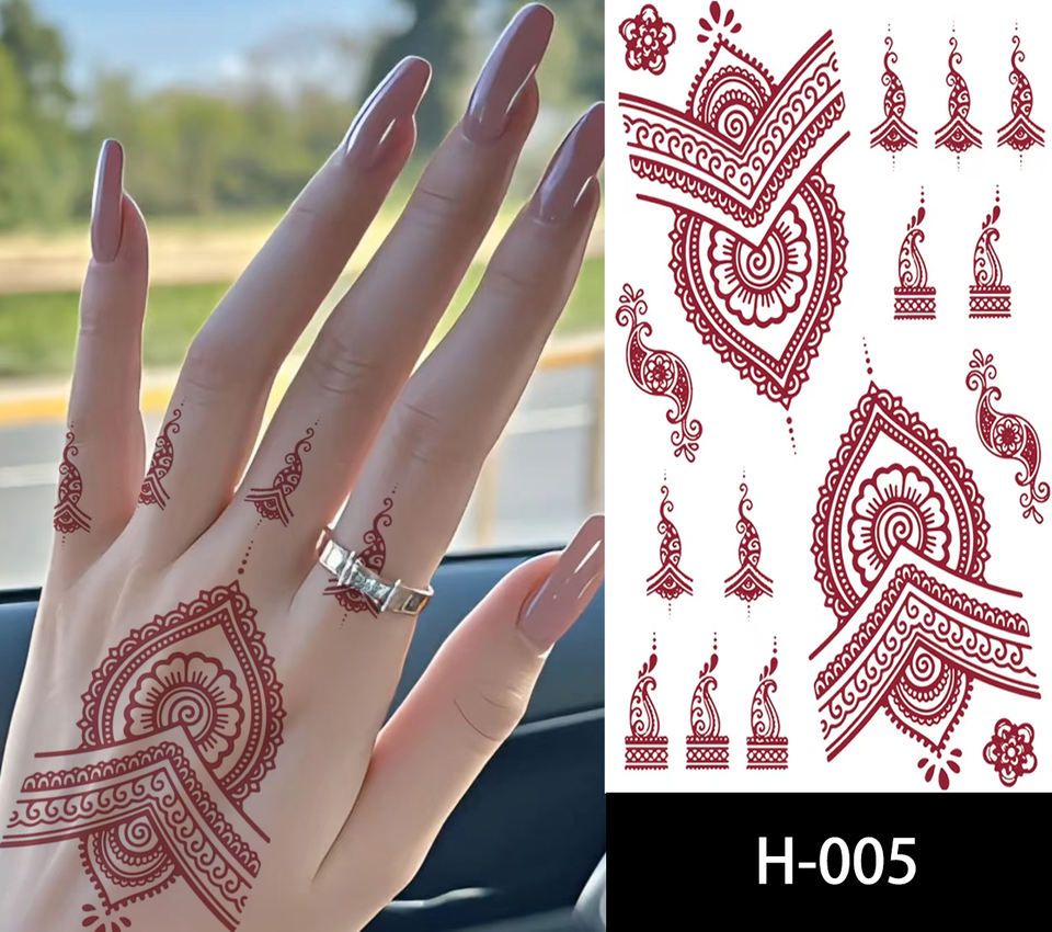 Tatuaggi 2025 Sexy all'henné rosso disegni temporanei Mehndi in pizzo Body Art a mano e braccio per le donne festa nuziale Festival