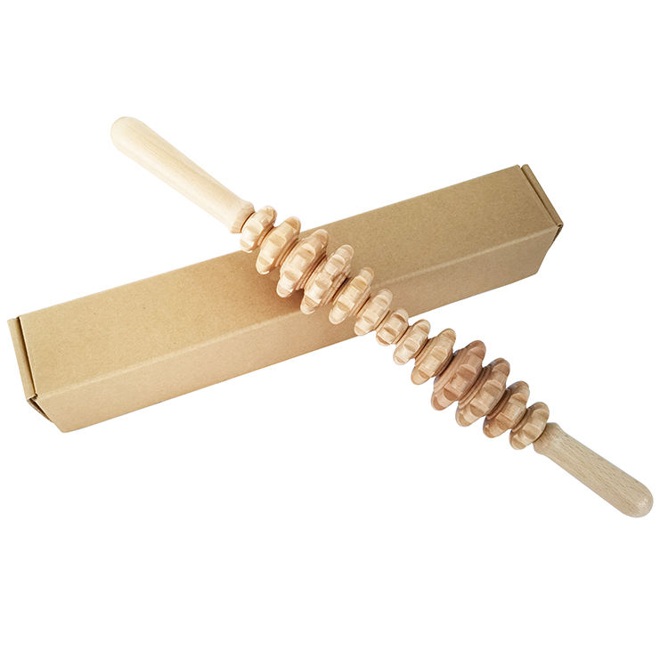 Rullo Massaggiante in Legno di Faggio con Manico Lungo per Massaggio Quotidiano del Corpo a Casa, Design Speciale 2025