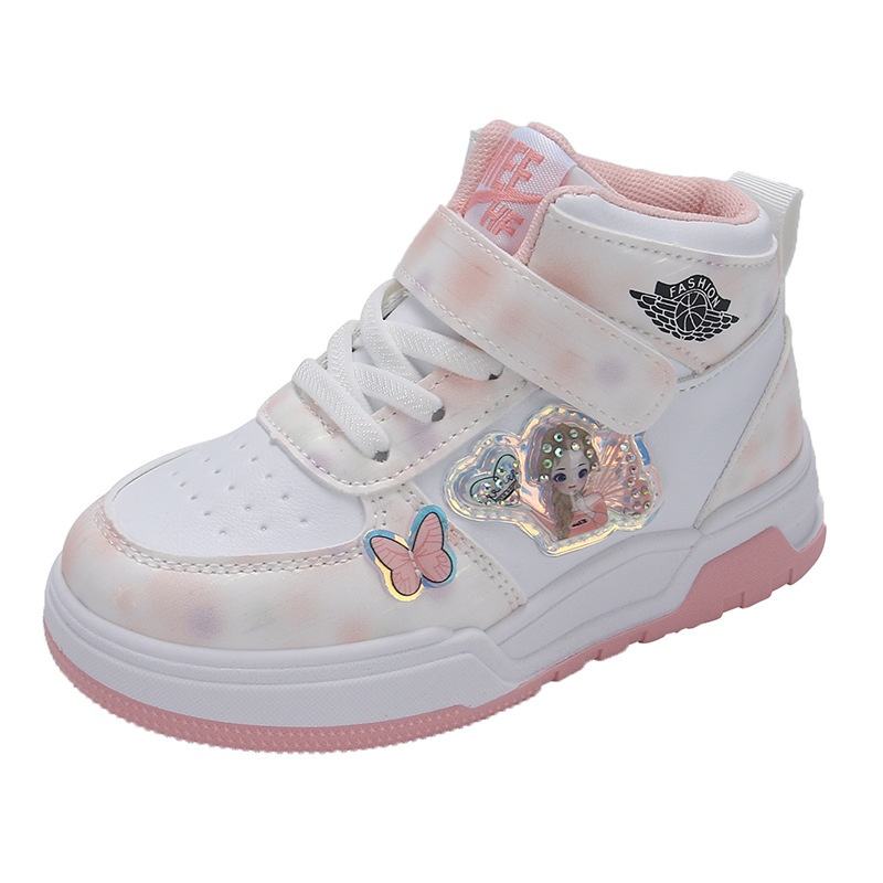 2025 primavera autunno Sneakers alte da ragazzo scarpe sportive alla moda delle ragazze delle scuole elementari bianche nuove scarpe da basket per bambini