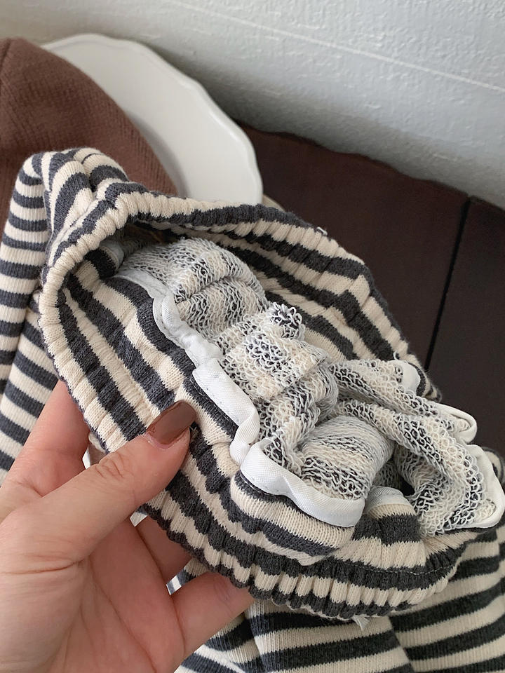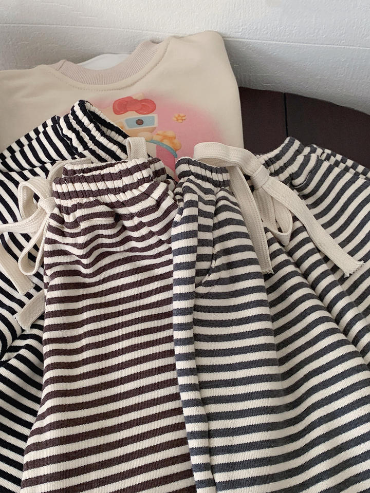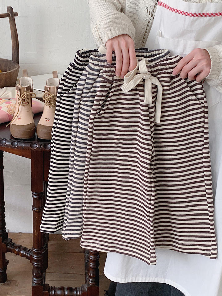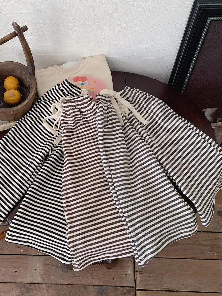 2025 primavera autunno pantaloni larghi in cotone Multi-metro Casual da ragazza con pantaloni a righe stringati alla moda