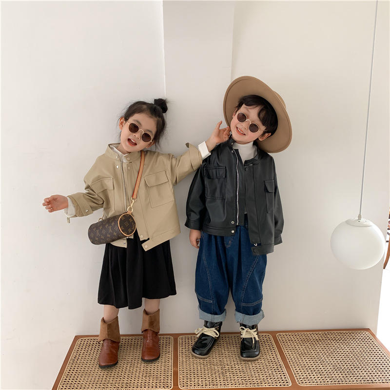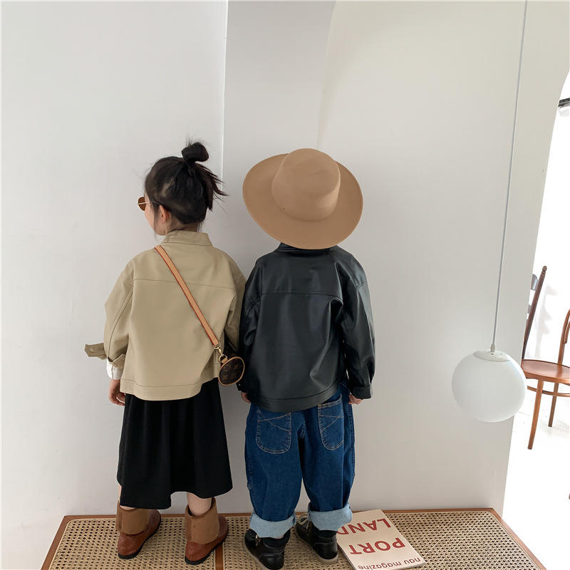 2025 primavera nuovo Blazer alla moda in stile coreano per bambini ragazzi giacca da moto e cappotto da ragazza in Denim e pelle sintetica alla moda da bambino