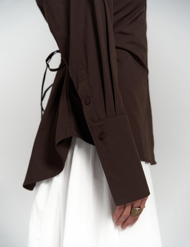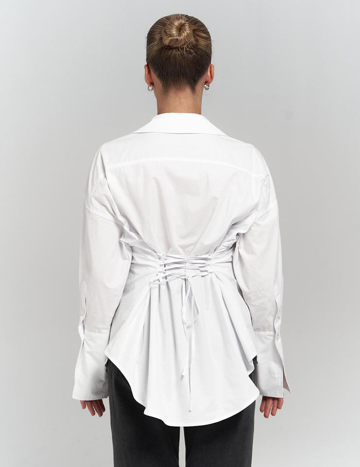 2025 camicia a vita bianca stile europeo primavera estate camicetta a maniche lunghe in puro cotone con Top regolabile