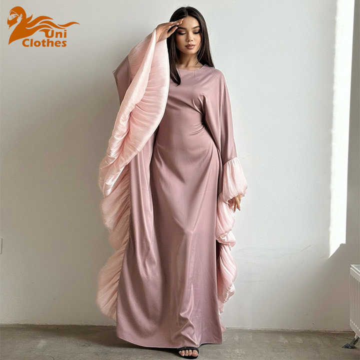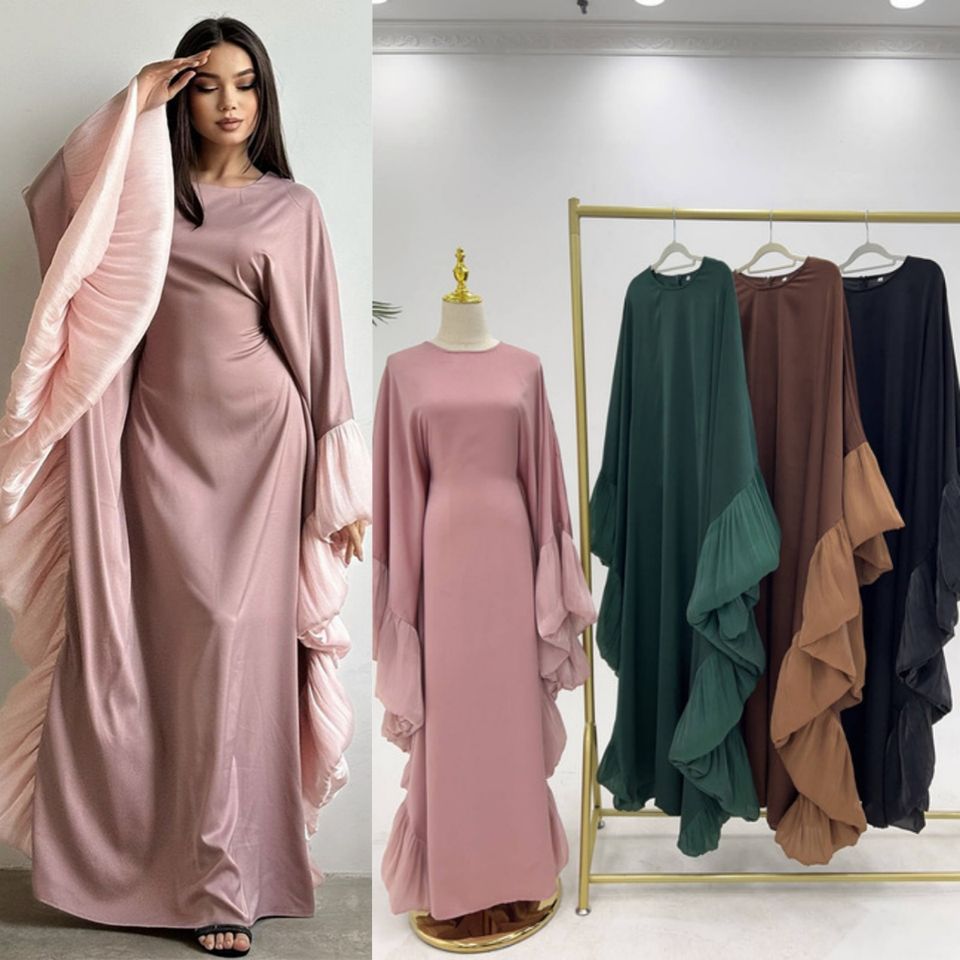 2025 Spring/Summer Muslim Elegant Abaya Middle East Dubai Arab Lace Sleeve Robe Bat Sleeves Long Dress Kabaya Caften
