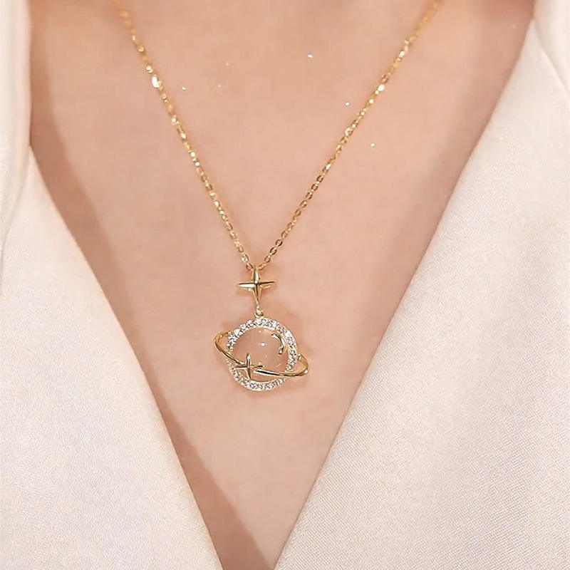Collana pendente pianeta 2025 in acciaio inossidabile con Design a stella e luna Super lucido pieno di diamanti catena di lusso con clavicola di lusso