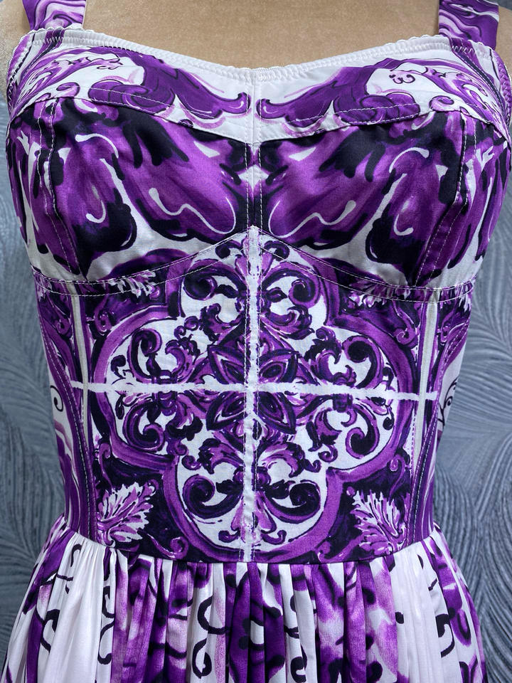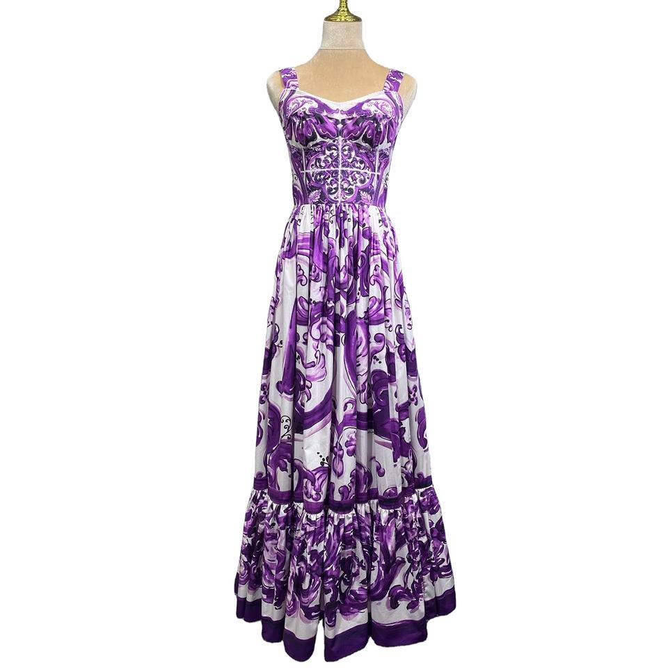 2025 Summer Elegant Floral Print Purple XXL Maxi Dress 100% Cotton Lady Spaghetti Strap Eco-Friendly Big Swing Party Evening