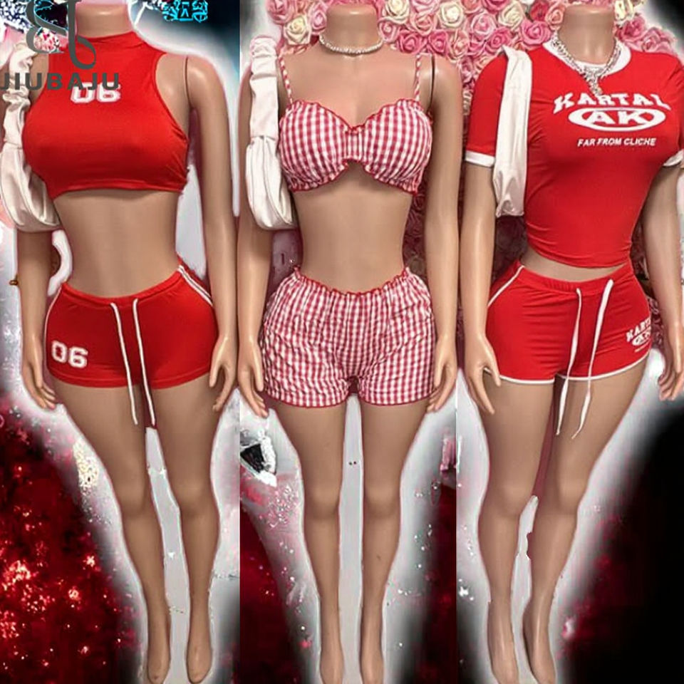 Completo Estivo 2025 alla Moda, Due Pezzi Rosso Carino e Femminile, Abbigliamento Streetwear da Club, Top Corto Aderente e Pantaloncini, Outfit Coordinato Dolce