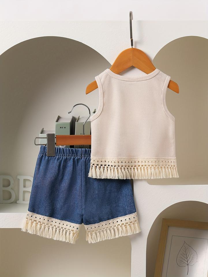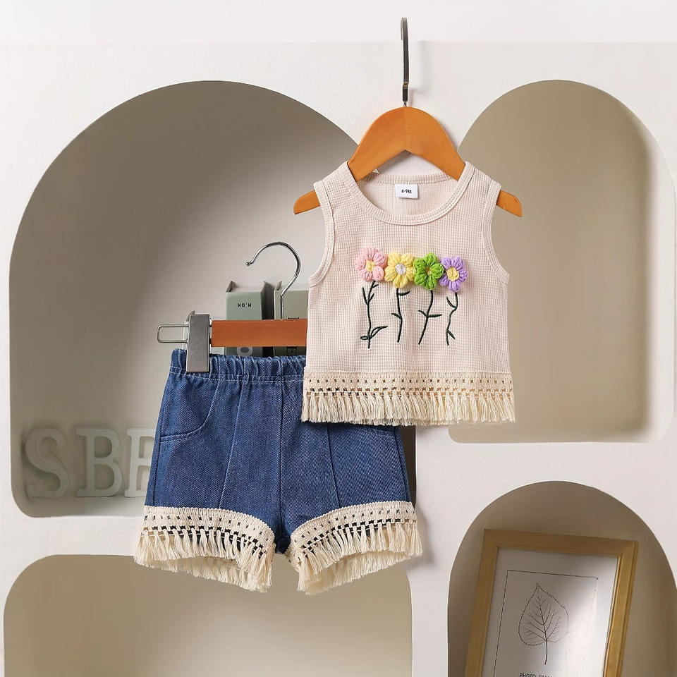 2025 Summer Kids Clothing Fashion Outfit Toddler Girls Clothing Sets Bohemian Fringe Style 2 6 Years Girls Clothing Sets