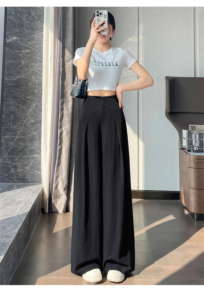 2025 Summer New Cotton and Linen Women's Wide Leg Pants Solid Ice Silk High Waist Straight Casual Loose Suit Trousers Female