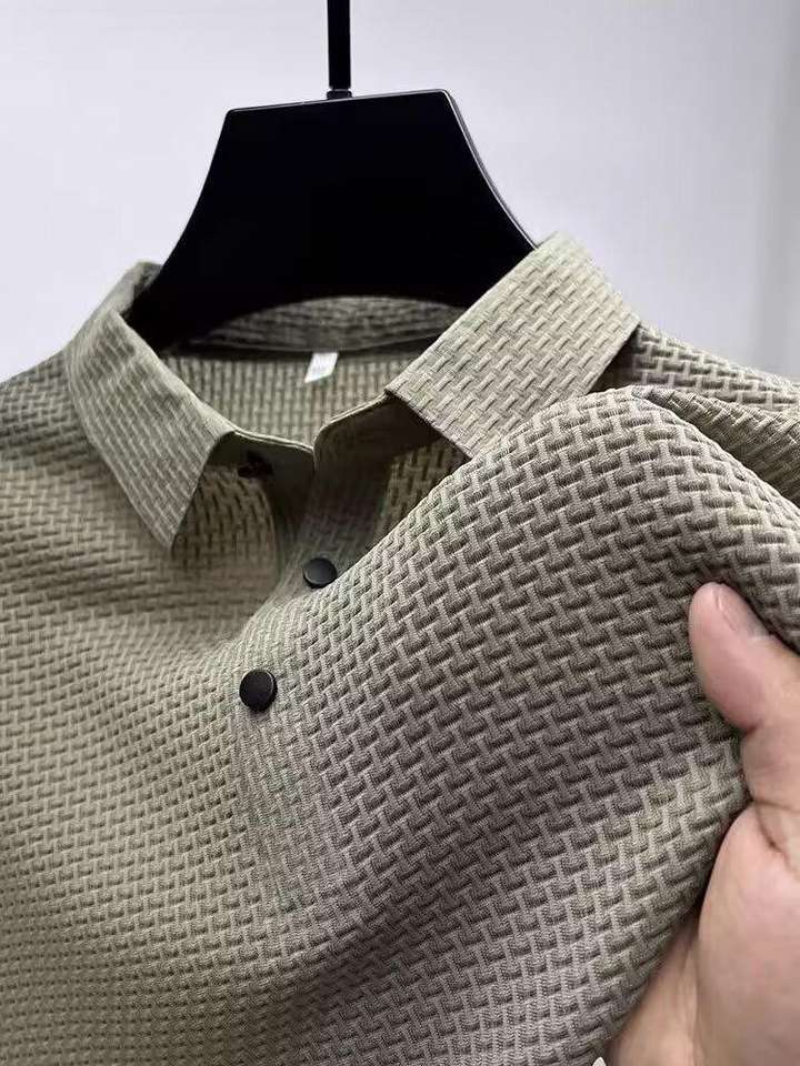 2025 Summer New Men's Solid Knitted Polyester Shirt Direct Supply Foreign Trade Short-Sleeved Casual Loose Fit Anti-Pilling
