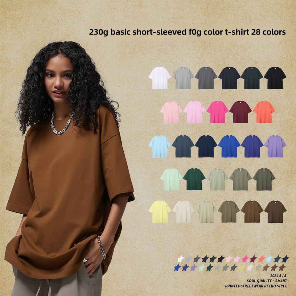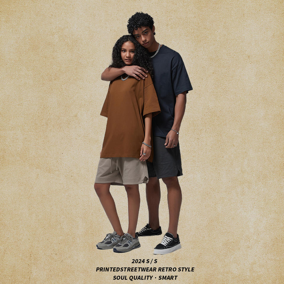 2025 Summer New Trendy Brand 230g Double Yarn 100% Cotton Pure Color Large Size Knitted Clothing Men's T-Shirts