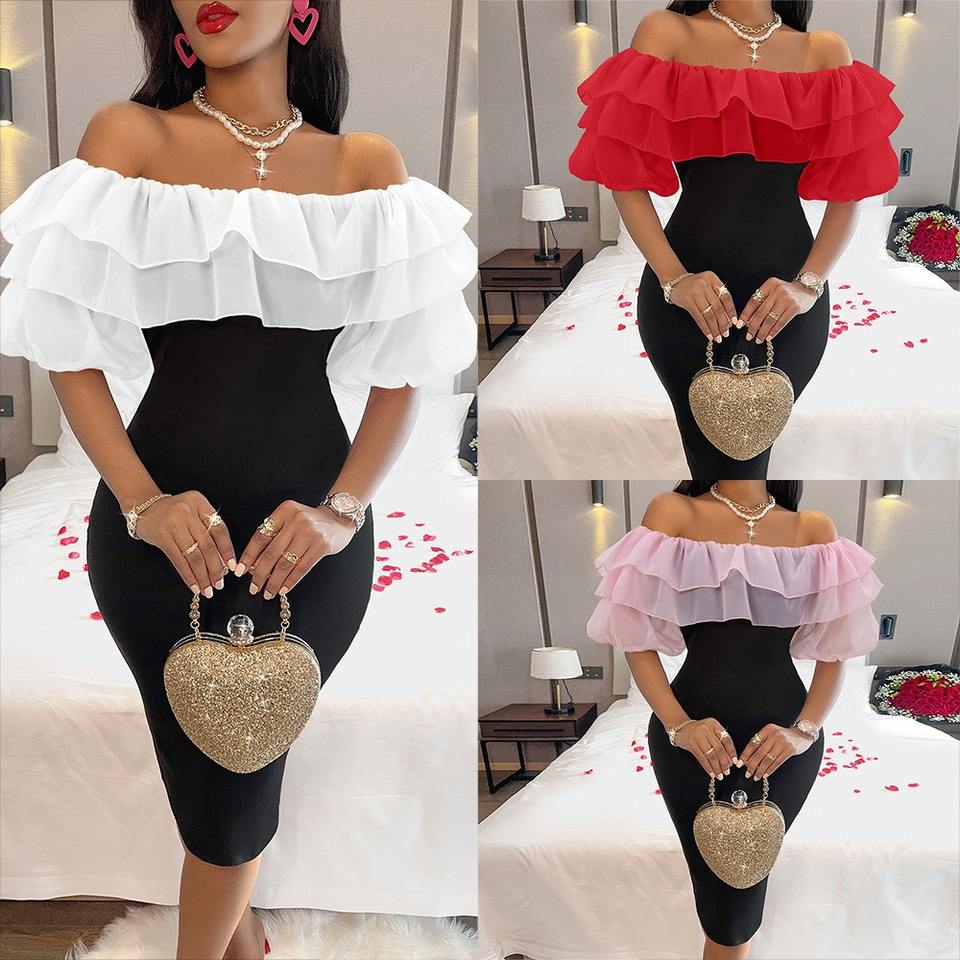 2025 estivo con giuntura a balze maniche a bolle una spalla in vita con piccolo abito aperto a forchetta