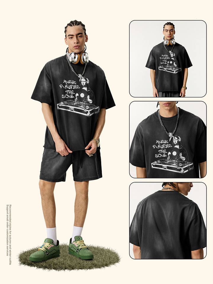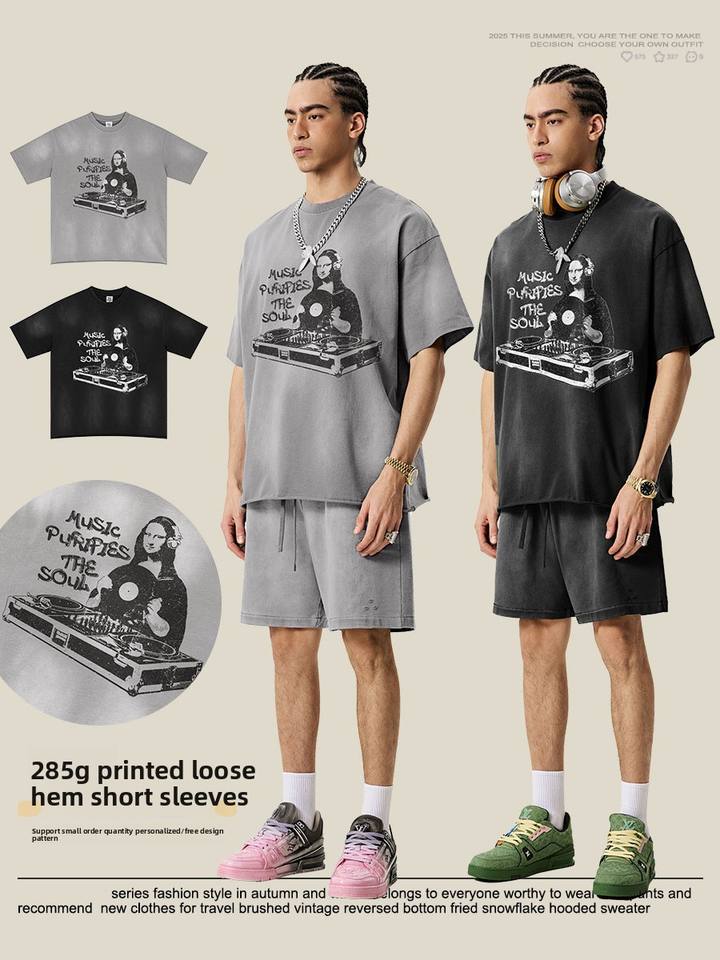 2025 Summer Trendy Half-Sleeved T-Shirt for Men American Retro Parody Printed Loose Top Short Sleeved