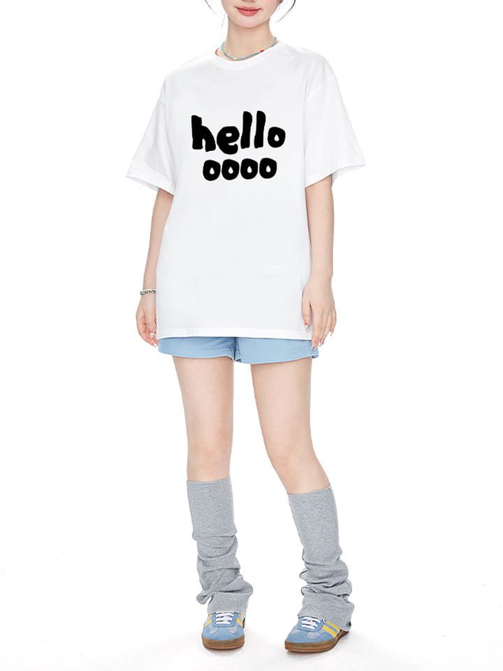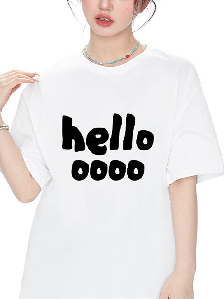 2025 Summer Women Clothing Rose Red Crew Neck T-Shirt Wholesale Short Sleeve Casual Style Simple Designer Hello Letter Shirt