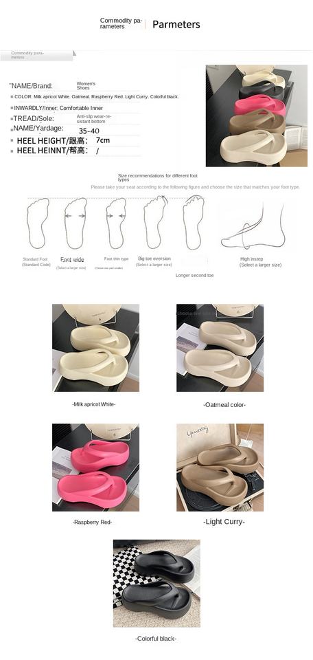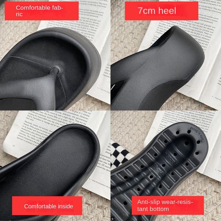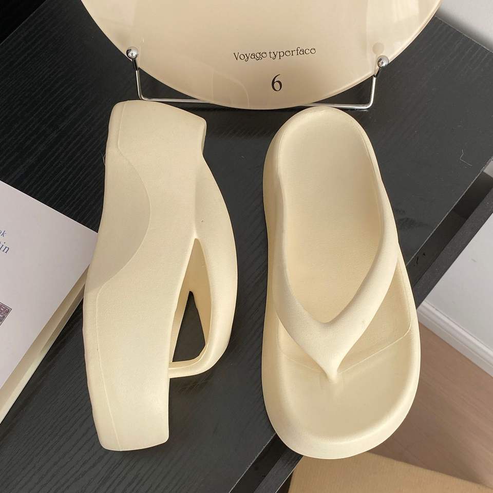 2025 Thick-soled High-heel Women's White Height Increasing Outerwear Summer Beach Flip-flops for Ladies