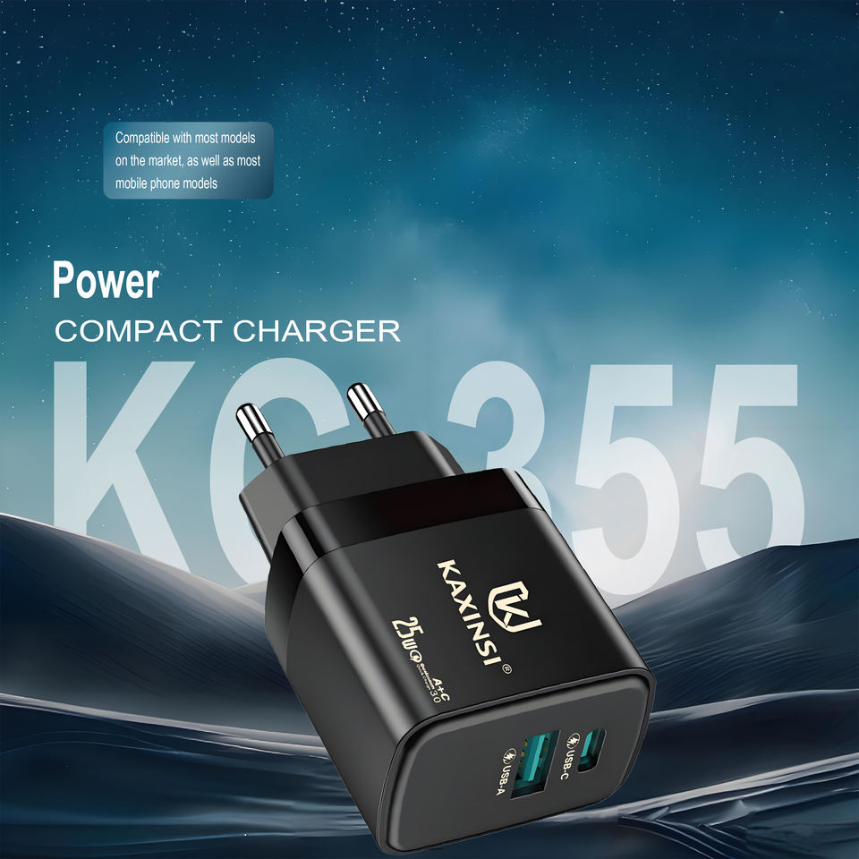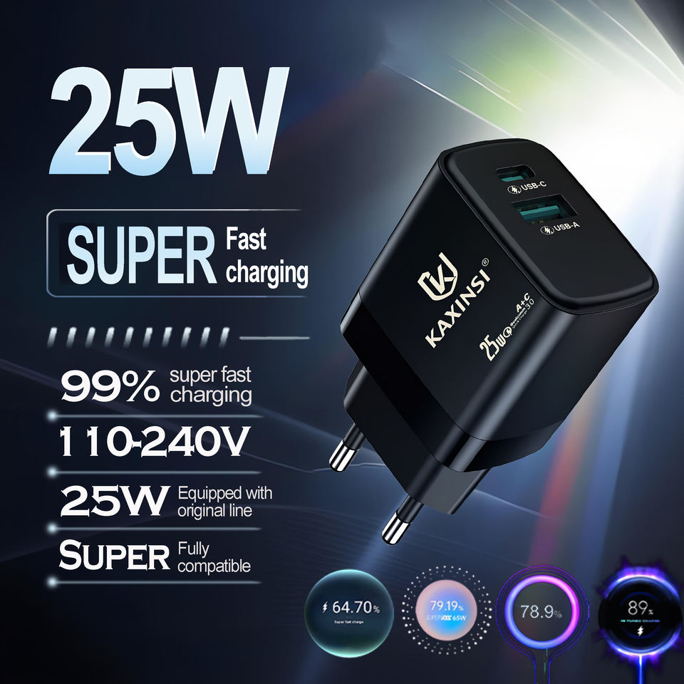 2025 Trending EU 25W Super veloce caricabatterie USB-A + C doppia porta Chip Ultra-intelligente compatibile con la maggior parte dei modelli con linea originale