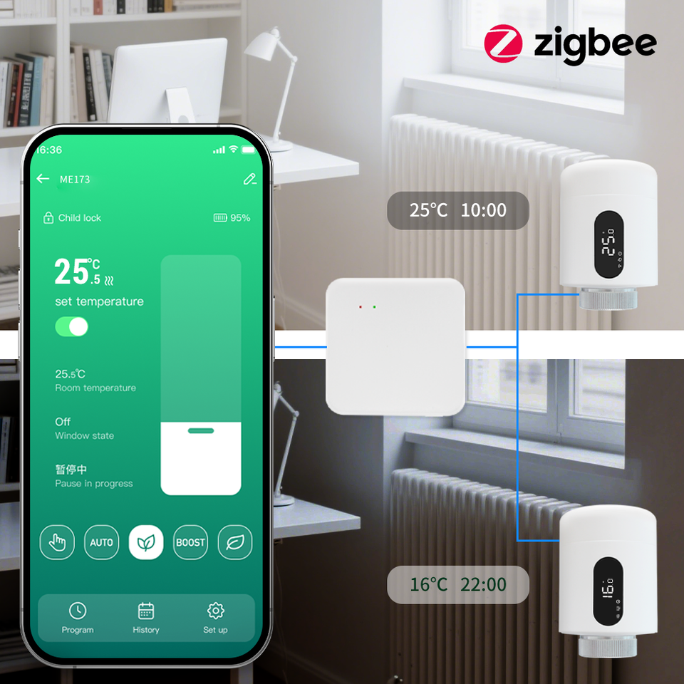 Valvola Termostatica per Radiatore TRV Smart Tuya 2025 con Zigbee Nuovo Design Flessibile e Funzione di Risparmio Energetico
