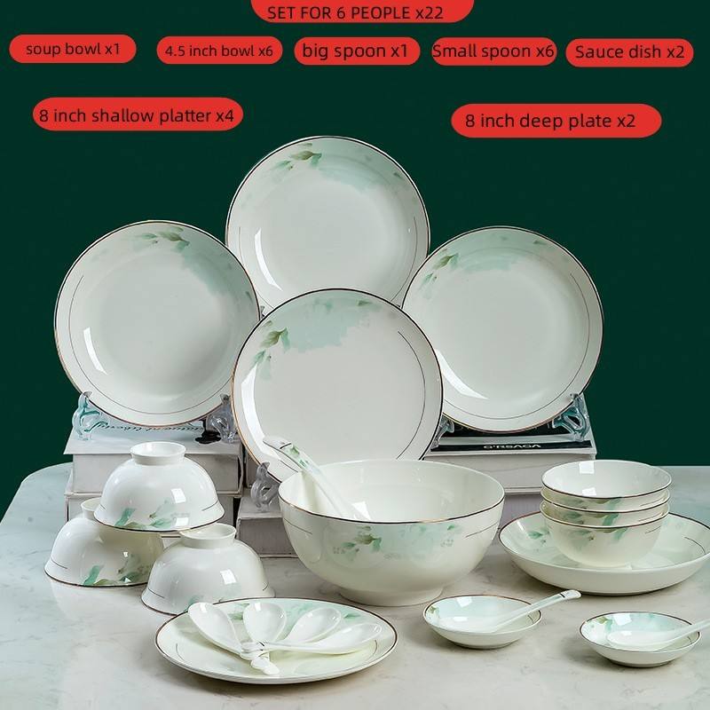2025 Design unico della moda Set da tavola in ceramica da 22 pezzi in ceramica ceramica Bone China piatti per 6 persone per hotel e servizi di ristorazione