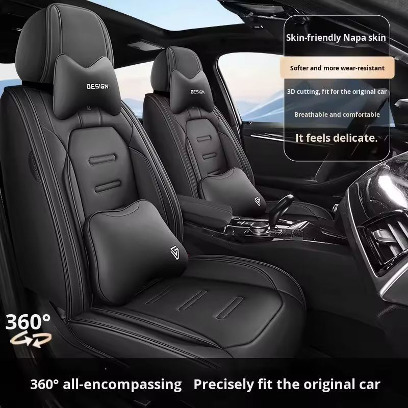 2025 Universal Luxury Nappa Leather 5 Seater Front All-leather Breathable All Seasons Waterproof Green Car Seat Full Tiguan Polo