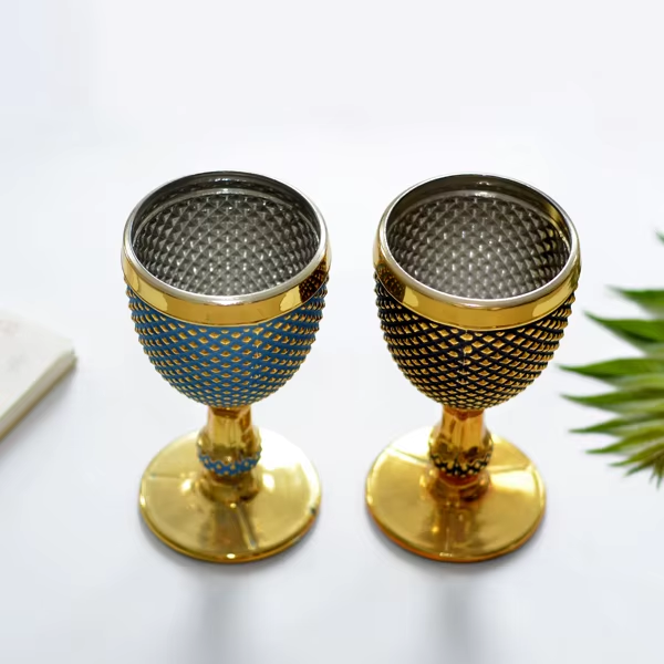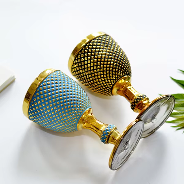 Calice da Vino Retrò Rosso Colofur 2025, Bicchiere Elettroplaccato Oro per Cocktail e Vino con Stelo