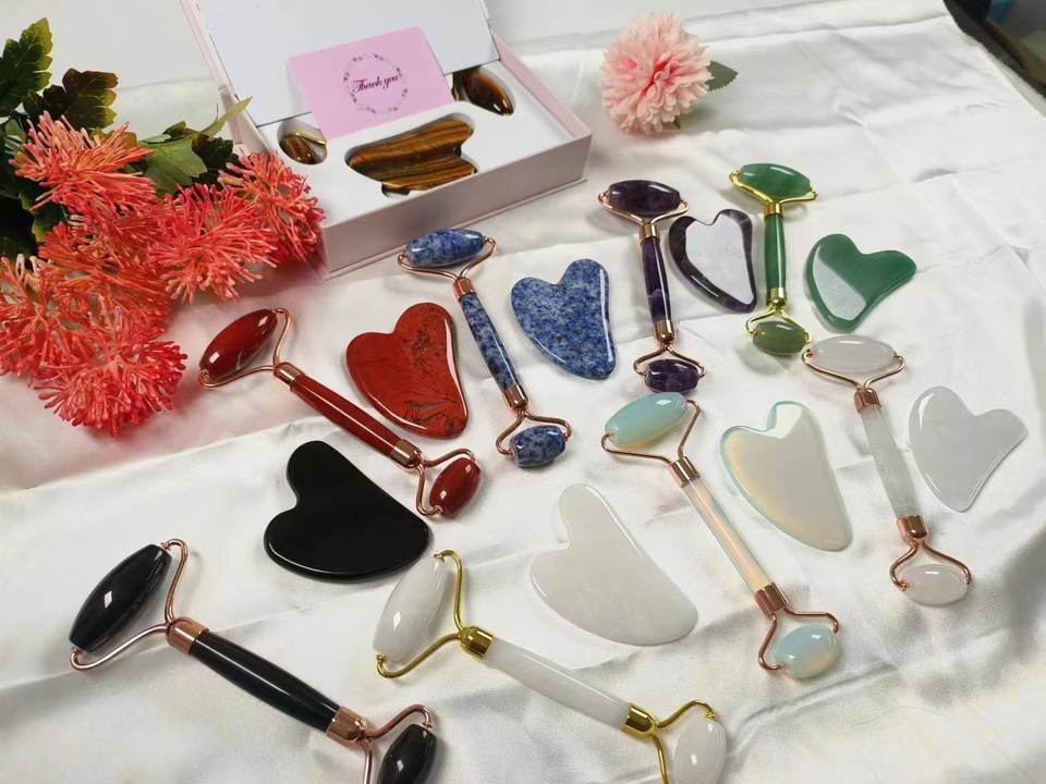 Set di Strumenti per Massaggio Viso 2025 con Logo Personalizzato, Rullo in Pietra di Giada e Gua Sha, Rullo in Diaspro Rosso per il Viso