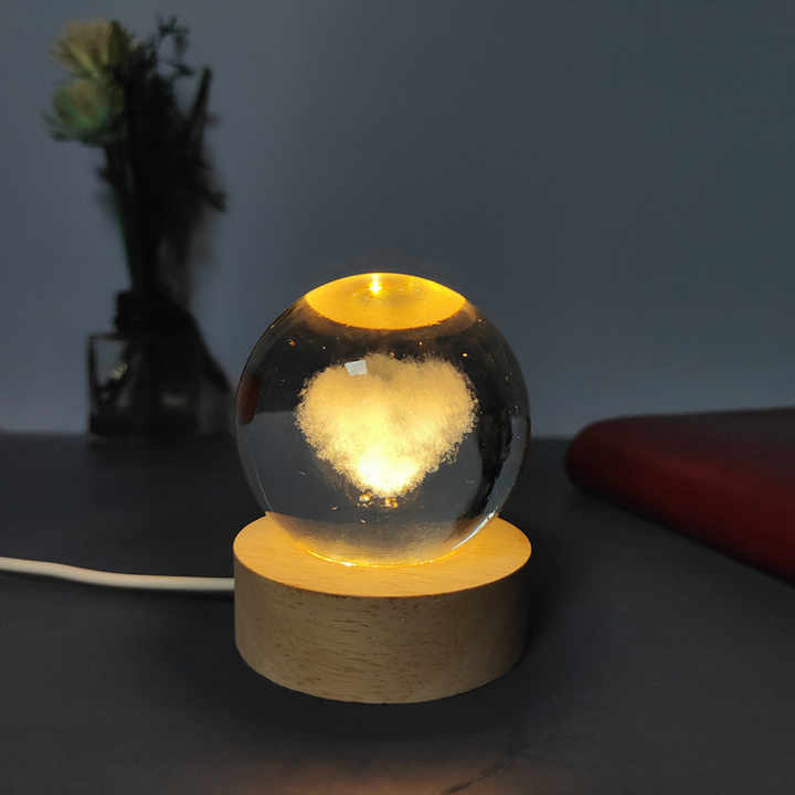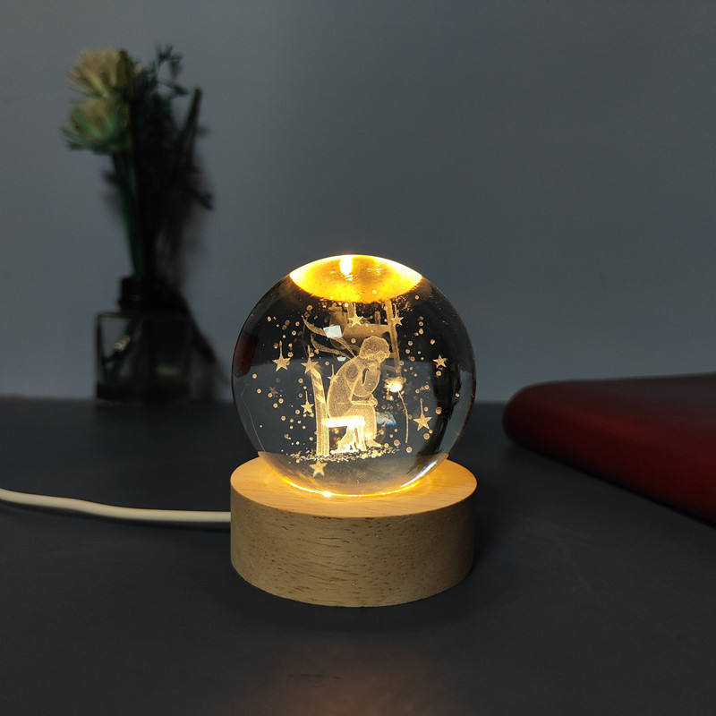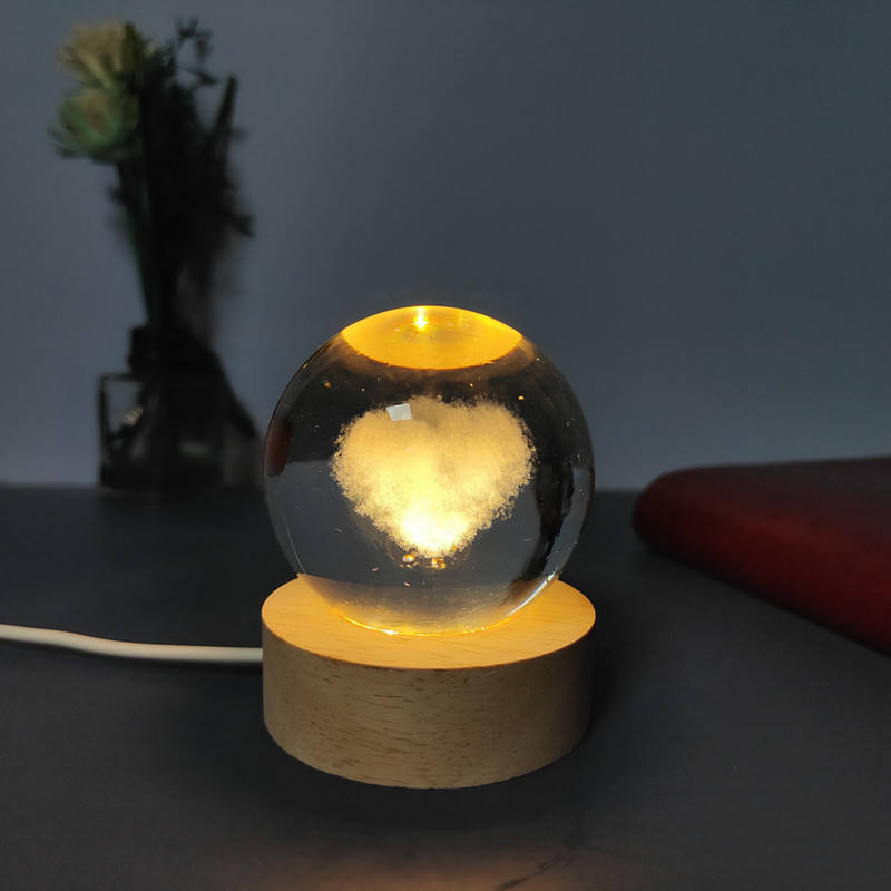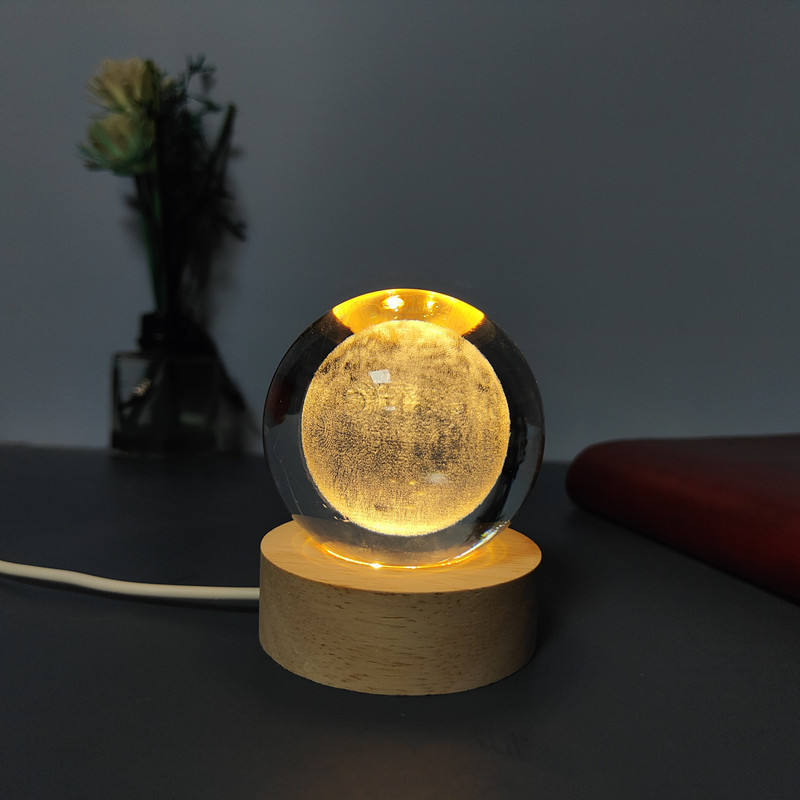 2025 all'ingrosso Mini interruttore USB lampada notturna con Base in legno e luce a LED inciso 3D sfera di cristallo immagine di cristallo Darved