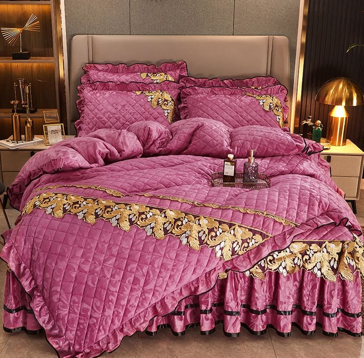 2025 Wholesale Winter Warm KING Size Bed Skirt Set Non-slip Thickened Bedspread with Lace Bed Cover Set for Home
