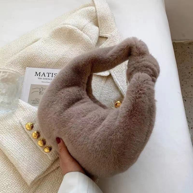 2025 Winter Best-Seller Long Velvet Fake Fur Brand Shoulder Tote Bag New Korean Fashion Armpit Portable Artificial Plush Handbag