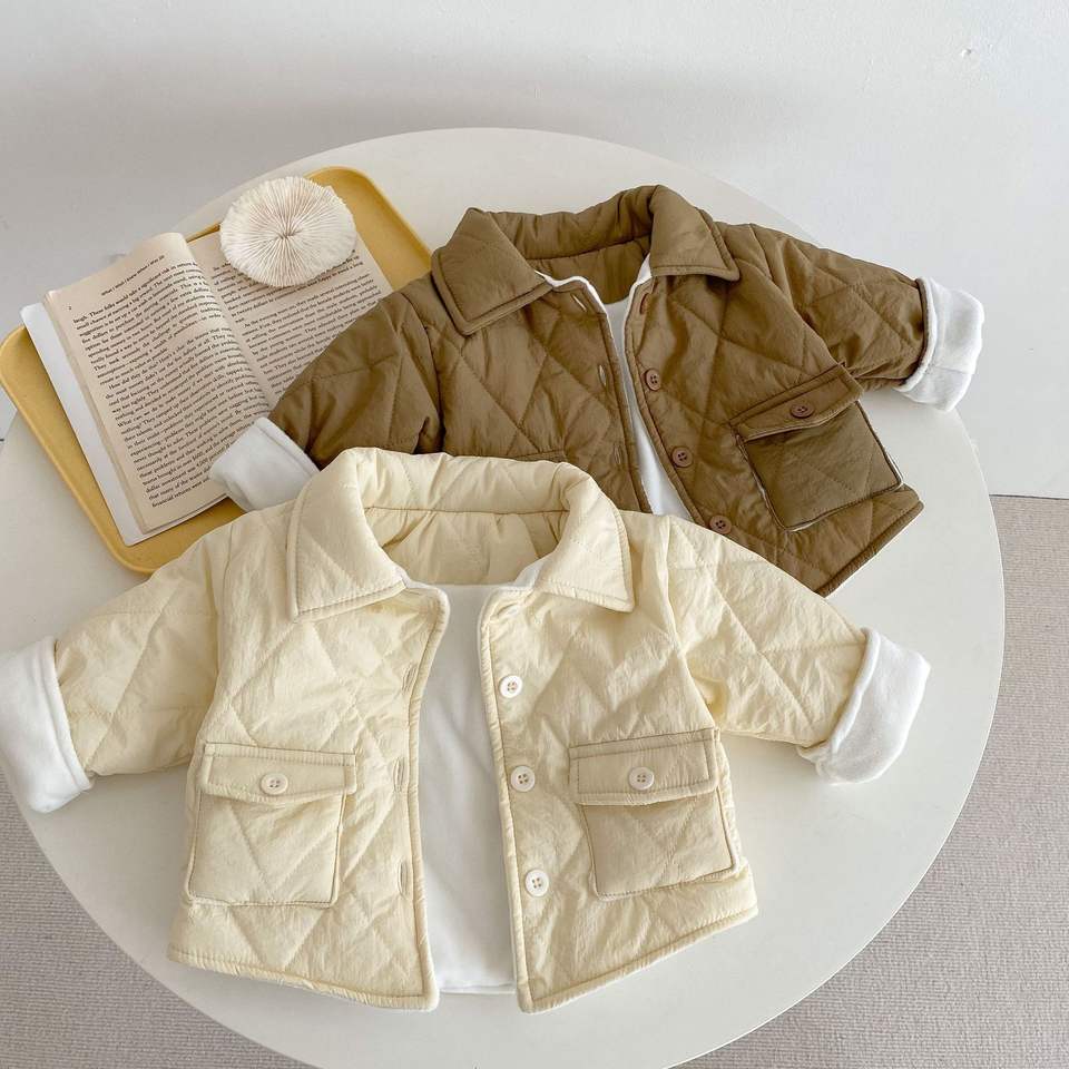 2025 Winter New Baby Cotton Padded Jacket Thickened Long Sleeve Newborn Clothes Lapel Baby Velvet Coat