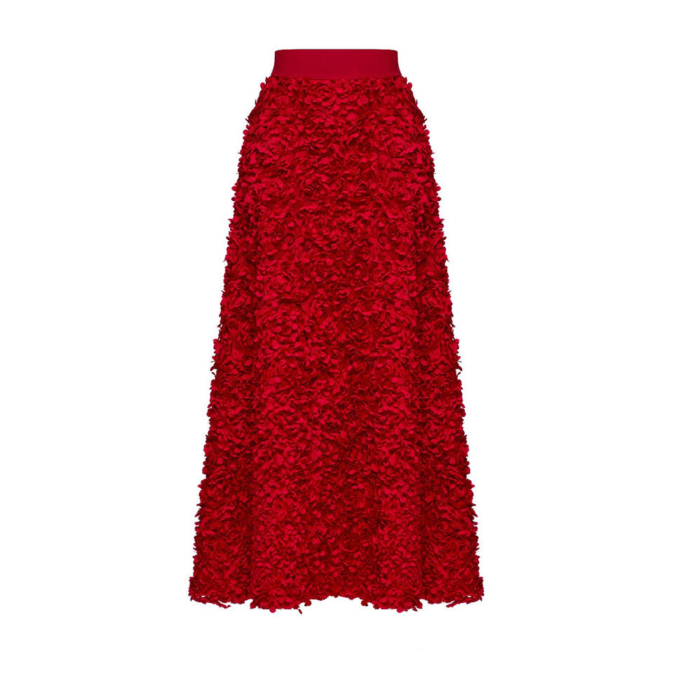Gonna Lunga Elegante Rossa Invernale 2025, Design Unico a Vita Alta, Abito da Sera Ispirato alla Moda Femminile con Gonna a Petalo