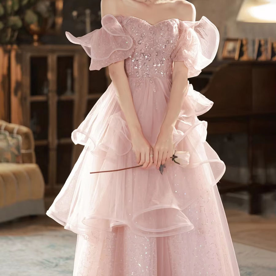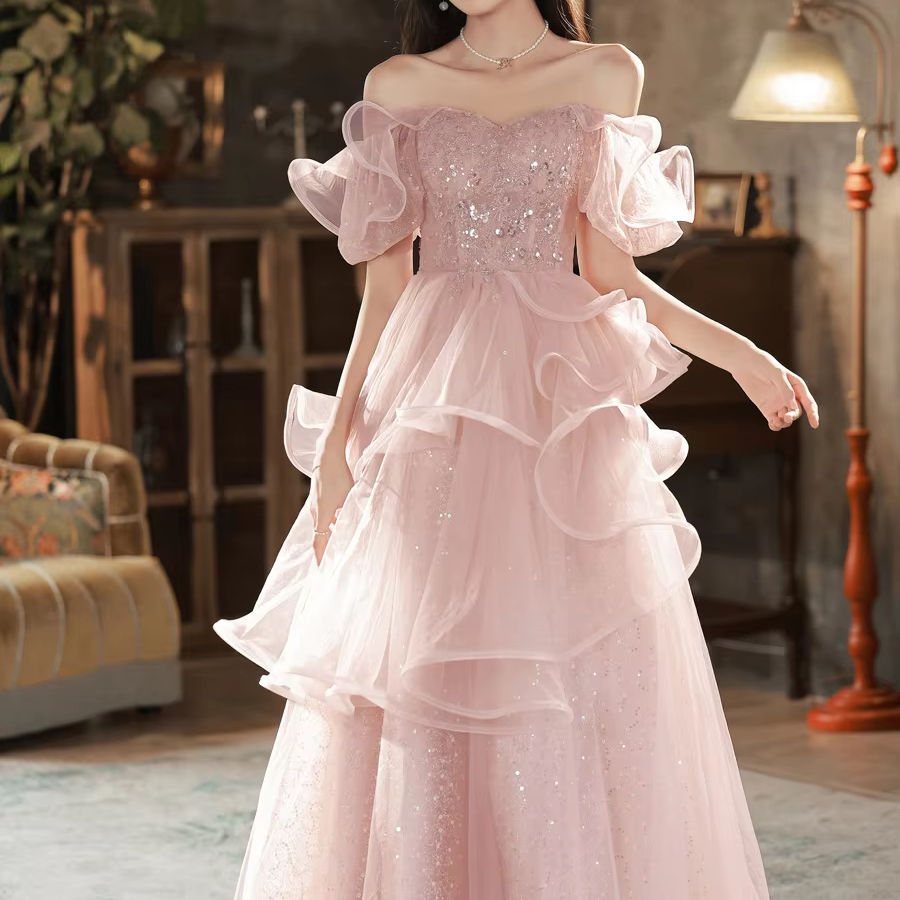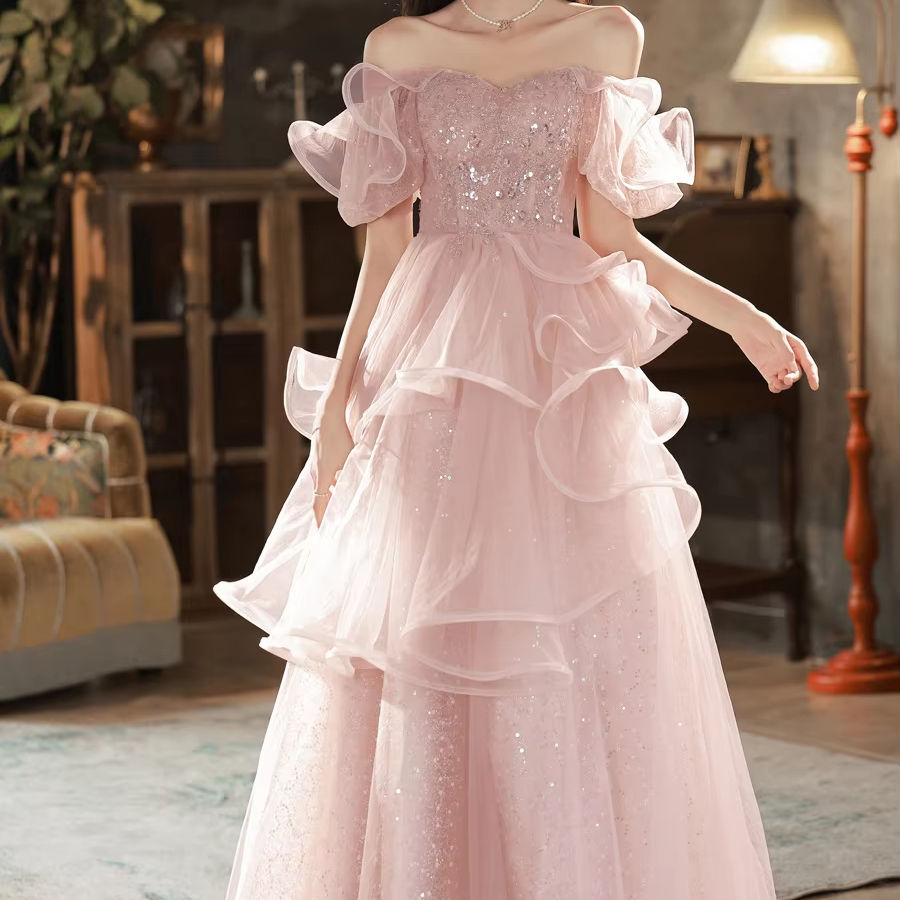 2025 Women's Classic Ball Gown Wedding Dress New French Off-Shoulder Sequins Evening Gown Birthday Party Dress