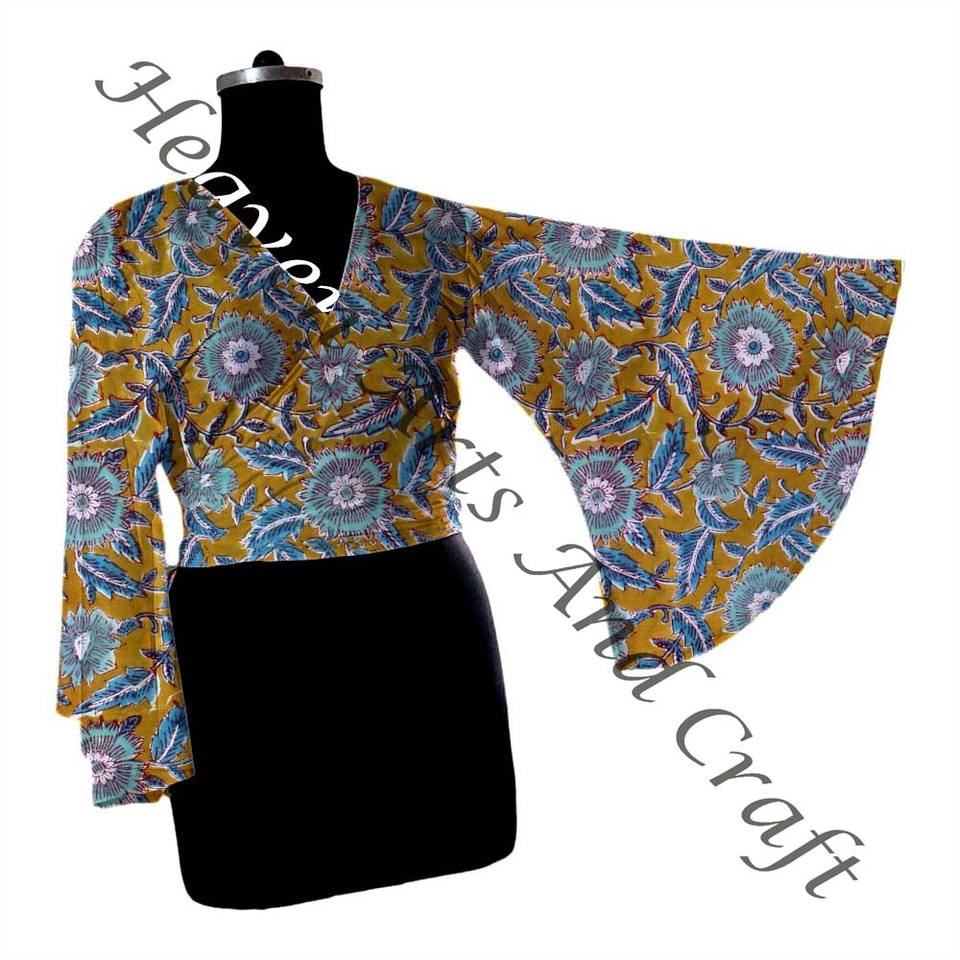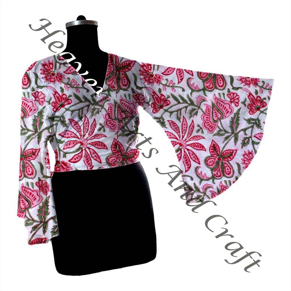 Hand Block Print Cotton Tie Tops Bell Sleeves