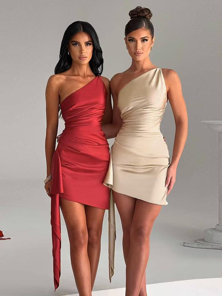 2025 Women's One-Shoulder Kaftan Dress Sexy Evening Club Dress Empire Waistline XL Summer Clothes for Women Inspired Turkiye