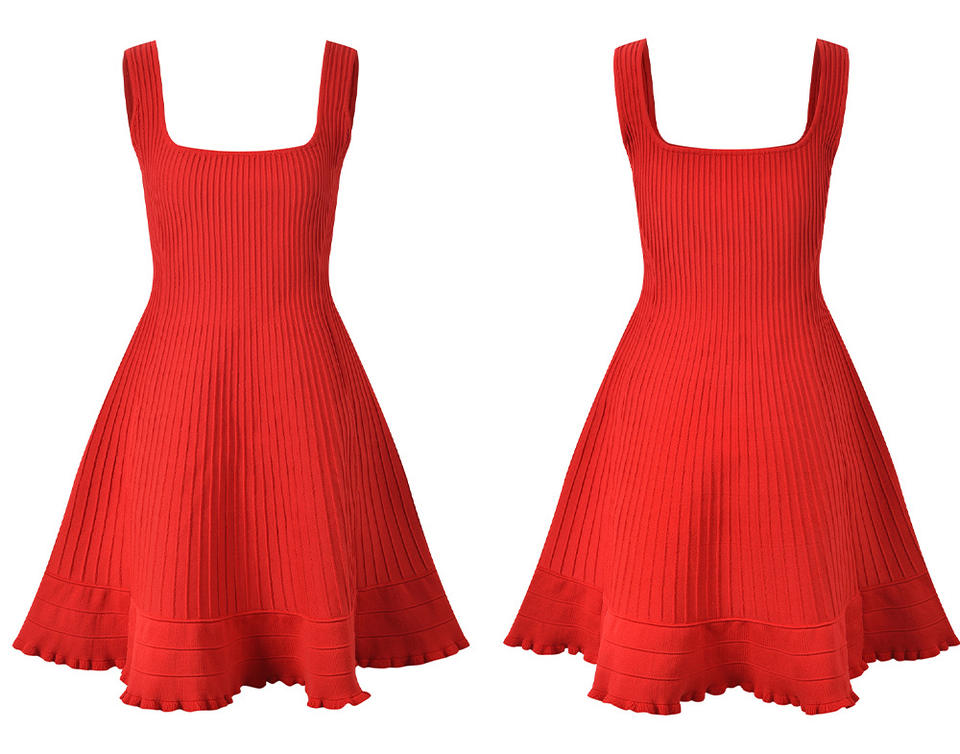 2025 donna retrò Mini abito senza maniche in maglia rossa stile solido per feste di vacanza di piacere datazione dolce vita naturale