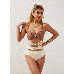 Costume da Bagno Intero Sexy da Donna 2025 con Cut-out e Blocchi di Colore, Arricciato - Bikini e Abbigliamento da Spiaggia