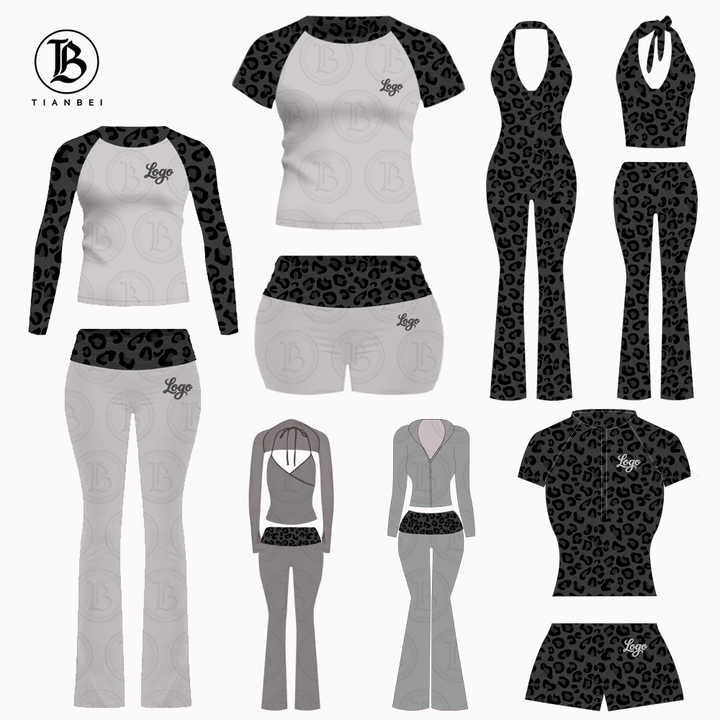 2025 Y2K Women Lounge Wear Cheetah Print Two Piece Set Custom LOGO Pink Leopard Cotton Raglan Sleeve T Shirt and Short Women Set