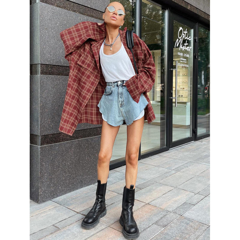 2025 autunno e inverno nuovo arrivo camicia allentata stile stile rosso mattone stile camicia a quadri abbigliamento donna