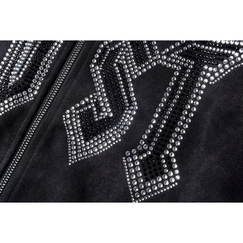 Logo scheletro con cappuccio con cerniera di nuovo Design 2025 con felpa con cappuccio con borchie di diamanti
