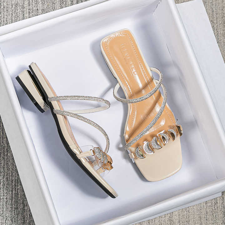 2025 summer new women's slippers outdoor sandals casual flat shoes Stylish metal design Korean style office wear Large size 43