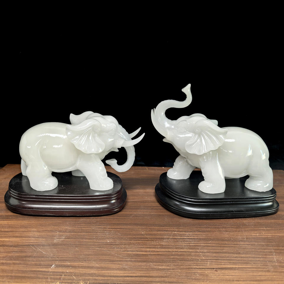 2025Jade Elephant Ornaments a Pair of Feng Shui Living Room Entrance Cabinet Wine Cooler Decorations