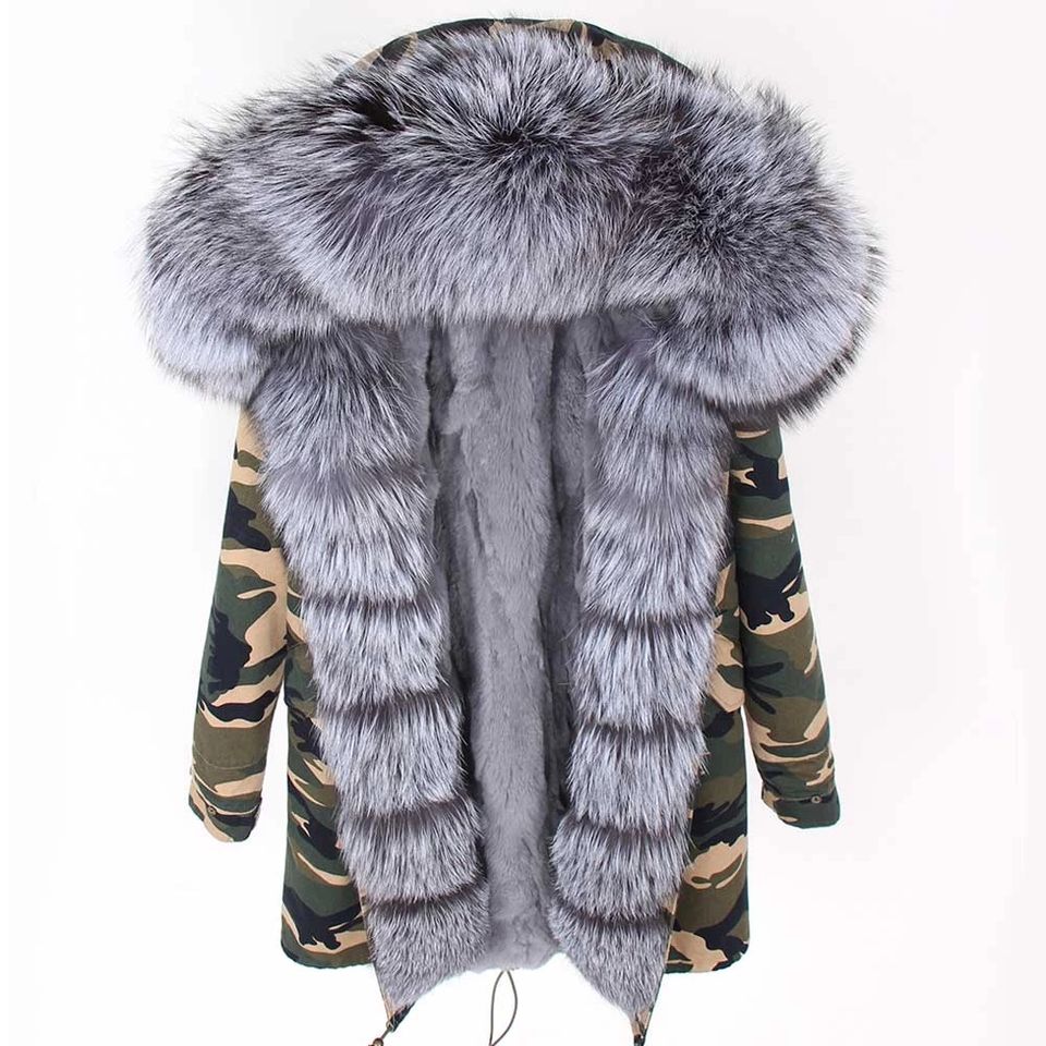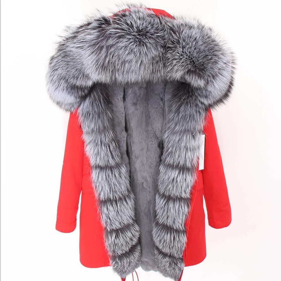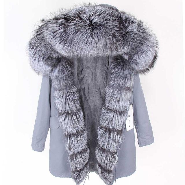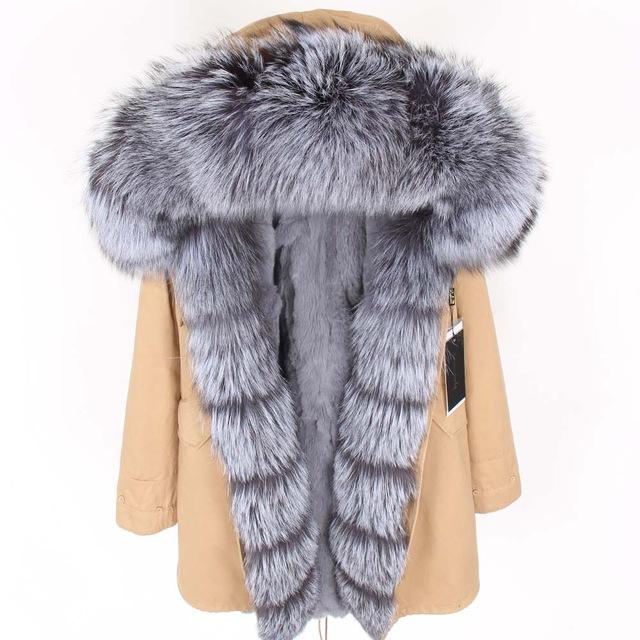 2025Winter Women Classic Comfortable Fur Coat Rabbit Fur Lining Detachable and Frontier Real Fox Fur Trench Coat