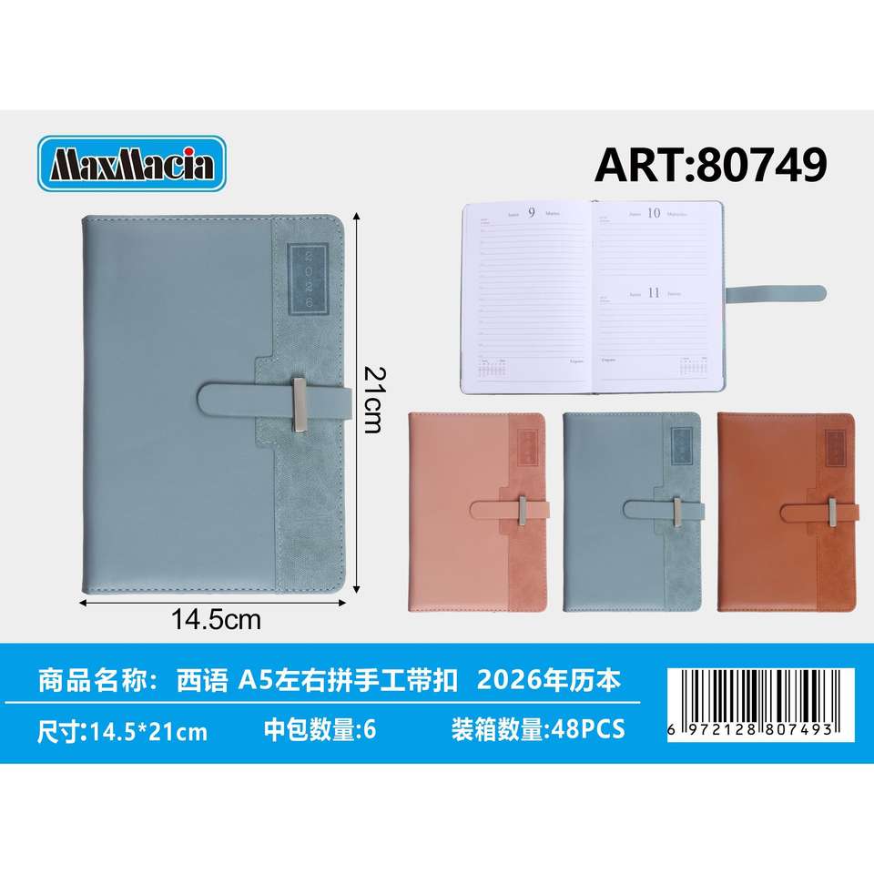 Peiyong 2026 A5 Leather Bound Planner with Buckle Closure for Office and School Use Promotional Calendar Model 80749