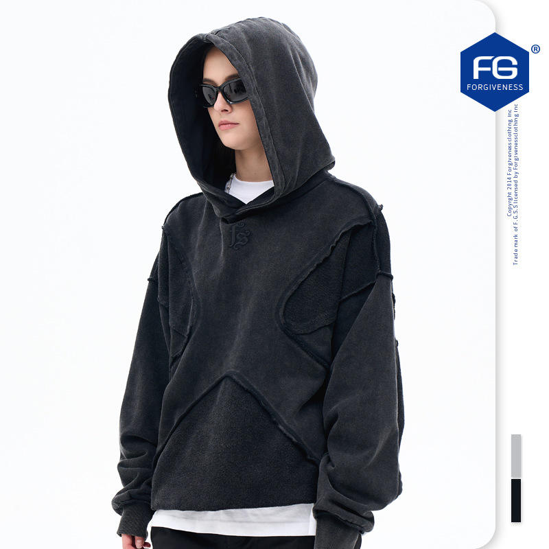 2026 Autumn Winter Men's Hooded Sweatshirt Reverse Car Design High Street Style Solid Color Long Trendy 100% Cotton