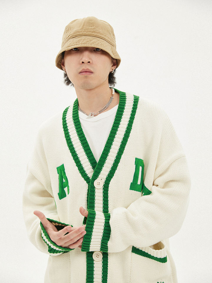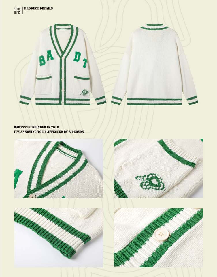 Cardigan in Maglia Stile Lettera Sorority Autunno Inverno 2026, Manica Lunga Casual Rosa e Verde con Logo Personalizzato