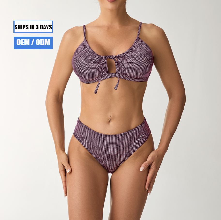 2026 Beach Hot Plaid Women's Solid Two-Piece High-Waisted Bikini Mikro Women's Sexy Swimsuit Set