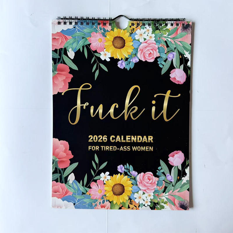 2026 Calendar for Tired-Ass Women Floral Design Wall Calendar With Spiral Binding Funny Slogan Calendar Daily Planning
