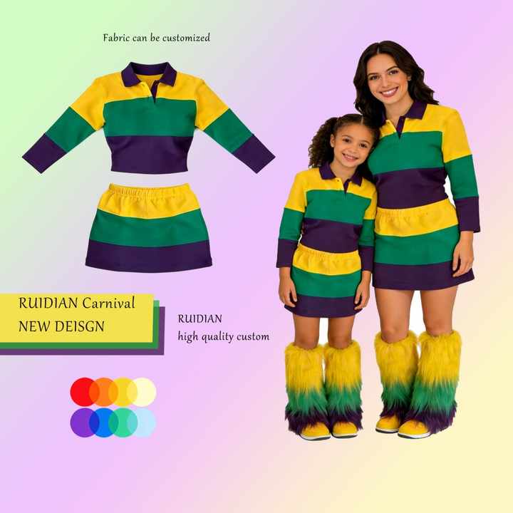 Collezione 2026: Completo Mardi Gras Coordinato Mamma e Figlia, Set Festivo 2 Pezzi con Gonna, Set Carnevale per Ragazze