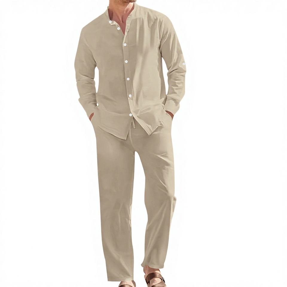 Completo da Uomo Primaverile 2026 per Commercio Estero Transfrontaliero, 100% Fibra di Bambù, Casual, Tinta Unita, con Strass, Due Pezzi, Collo Alto, Manica Lunga
