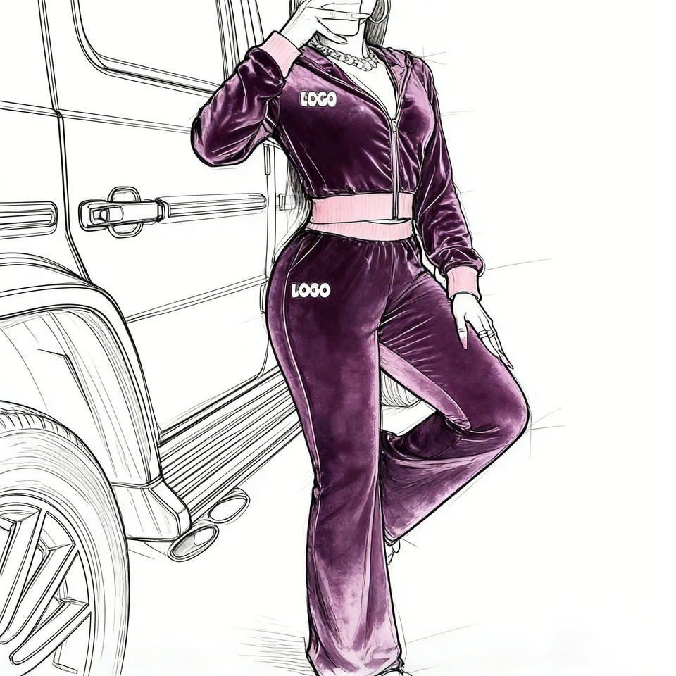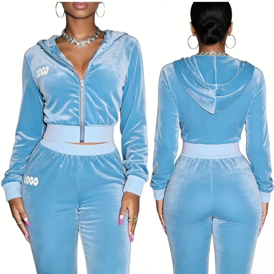 Tuta da Jogging in Velluto Y2K per Donna 2026, Set 2 Pezzi Personalizzabile con Logo Ricamato di Alta Qualità